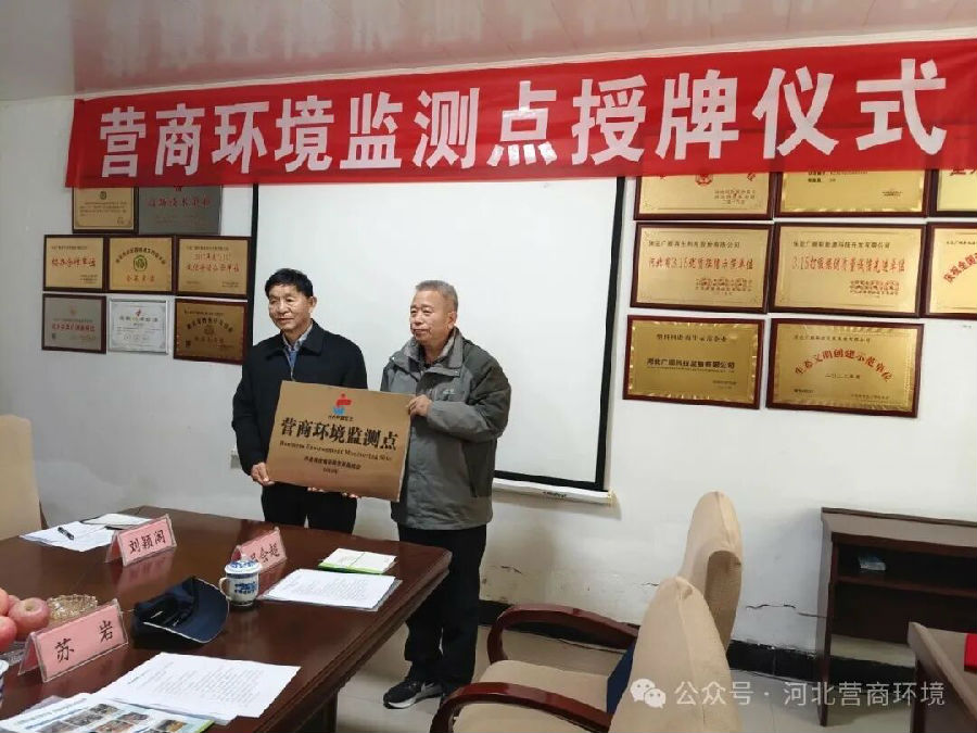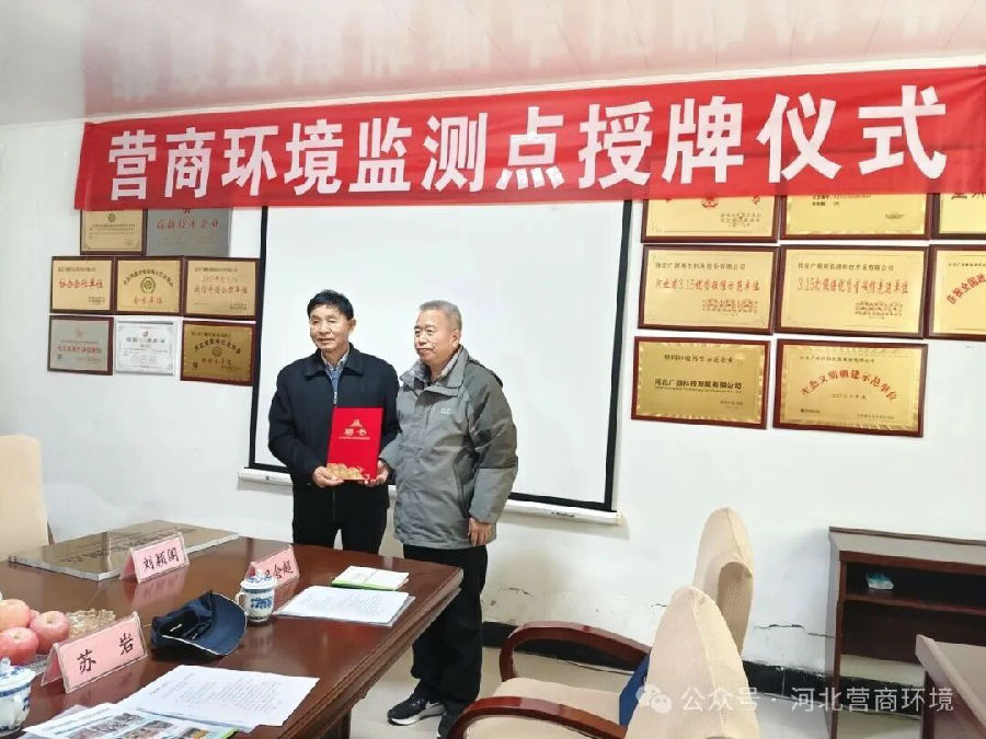 期间,白世轩会长向张金秋董事长颁发了理事聘书,同时为广顺集团授予了“营商环境监测点”牌匾。